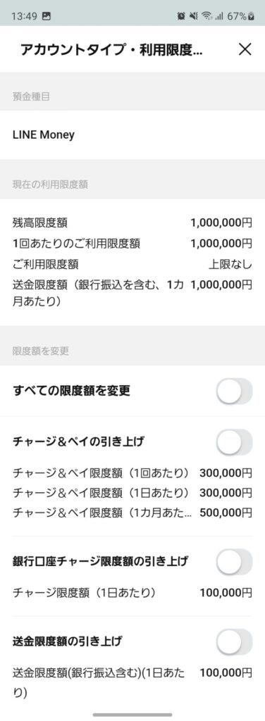 - LINE Pay残高ページの「設定」→「本人確認」から免許証と自分の顔写真を送付することで上限緩和可能